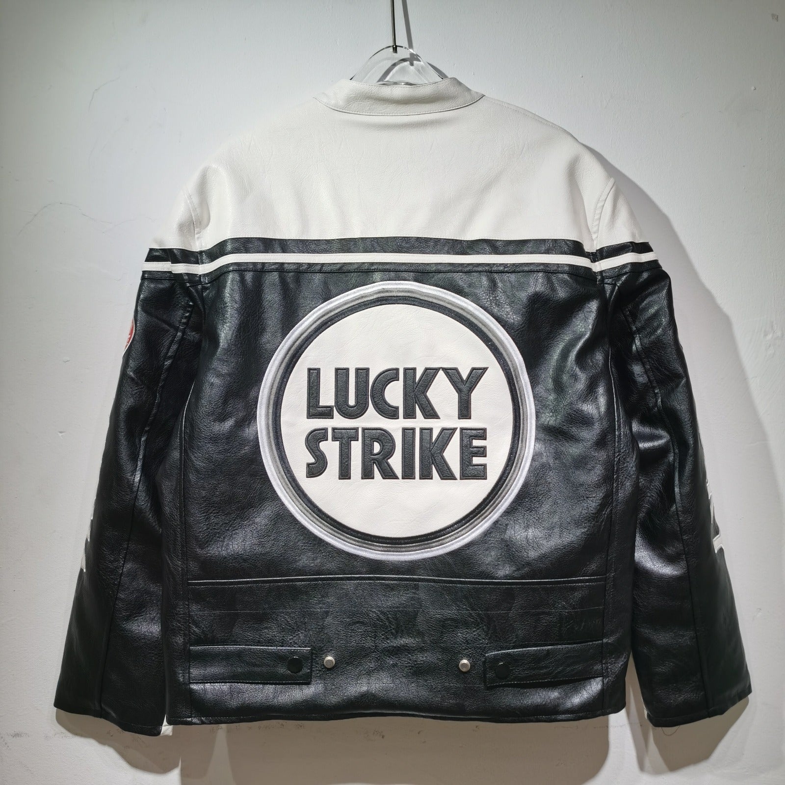 Lucky Strike White-Black Leather Vintage Racing Jacket